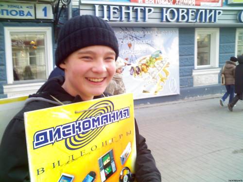 Раздача рекламных бклетов "Дискомании"